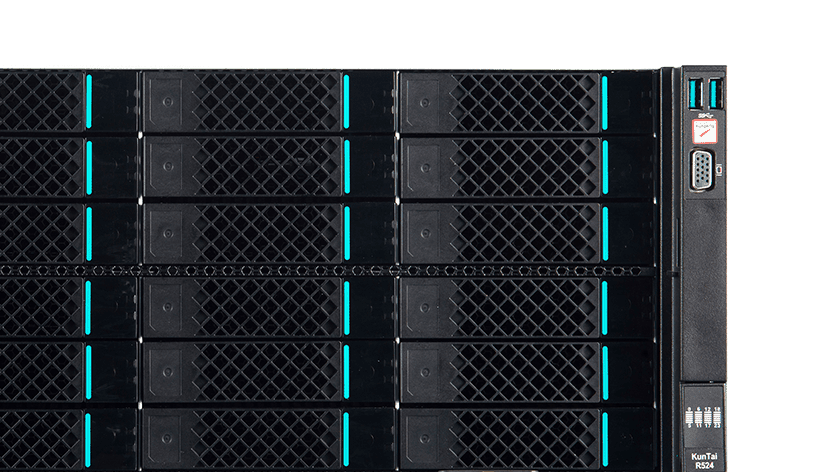 KunTai R524 存储型服务器是PA直营数码基于鲲鹏处理器推出的新一代 ARM数据中心服务器。。。主要面向存储业务,,具有海量存储、、高性能、、、、低功耗以及易扩展的特点,,,适合为大数据分析、、软件定义存 储等应用场景的工作负载进行髙效加速。。。